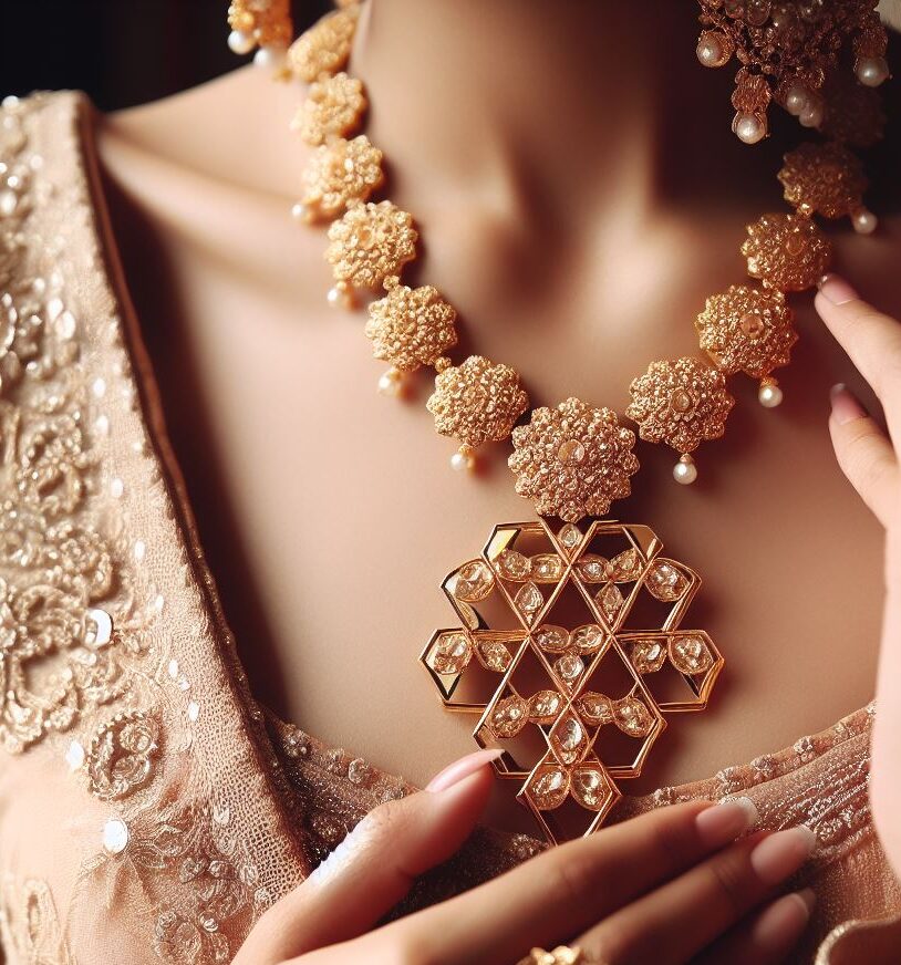 Wybór naszyjnika zależy w dużej mierze od stylu i dekoltu sukni ślubnej. Suknie z głębokim dekoltem V dobrze komponują się z naszyjnikami typu pendant lub z delikatnymi łańcuszkami. Z kolei suknie z wysokim dekoltem czy też typu strapless dobrze prezentują się z krótkimi naszyjnikami lub kolią.